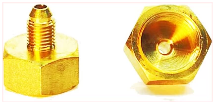Kylmäainepullon adapteri neljäsosa tuuman kokoinen.