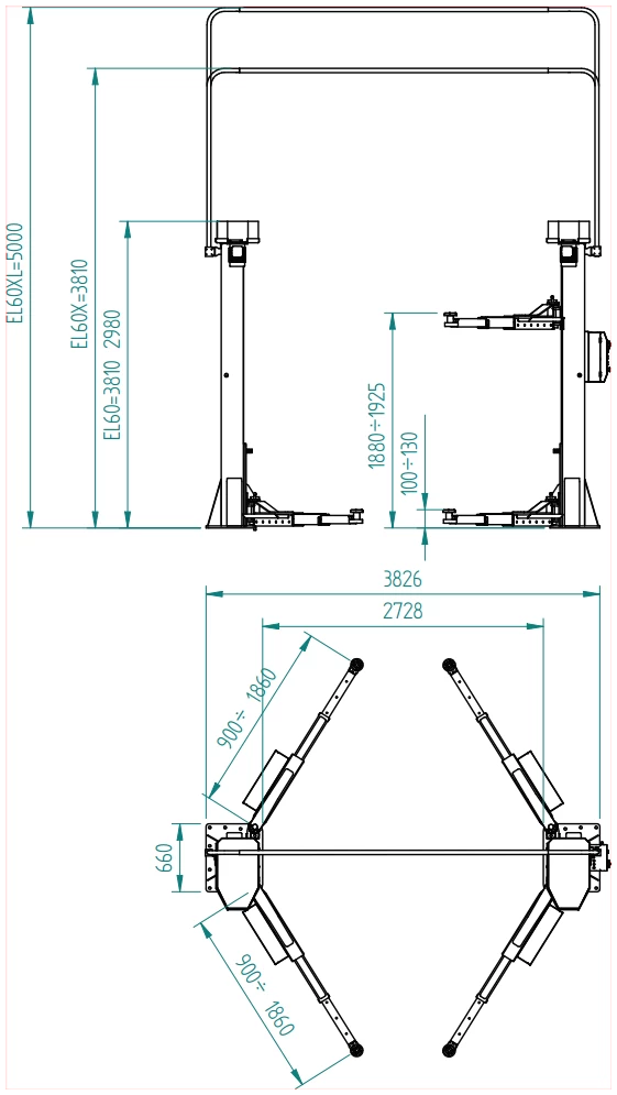 - Etu- ja takaosan kolmivaiheiset varret leveiden ja matalienkin ajoneuvojen nostamiseen.