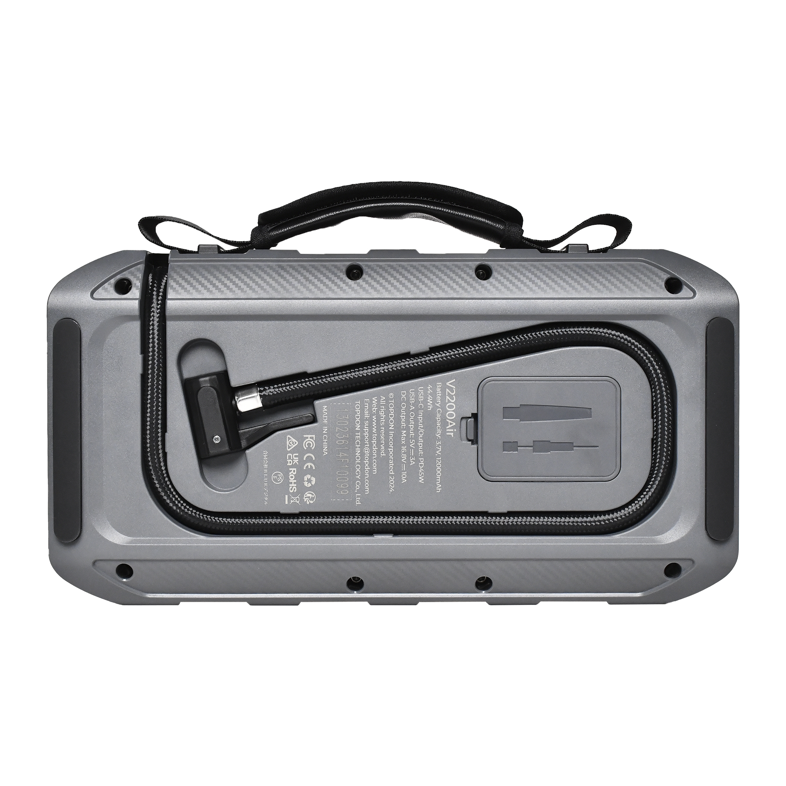 - V2200Air toimii myös PD45W-pikalatausvirtapankkina, varmistaen, että laitteesi latautuvat vain 30 minuutissa. Älä koskaan huolehdi puhelimen akun loppumisesta; V2200Air pitää sinut yhteydessä ja ajan tasalla.