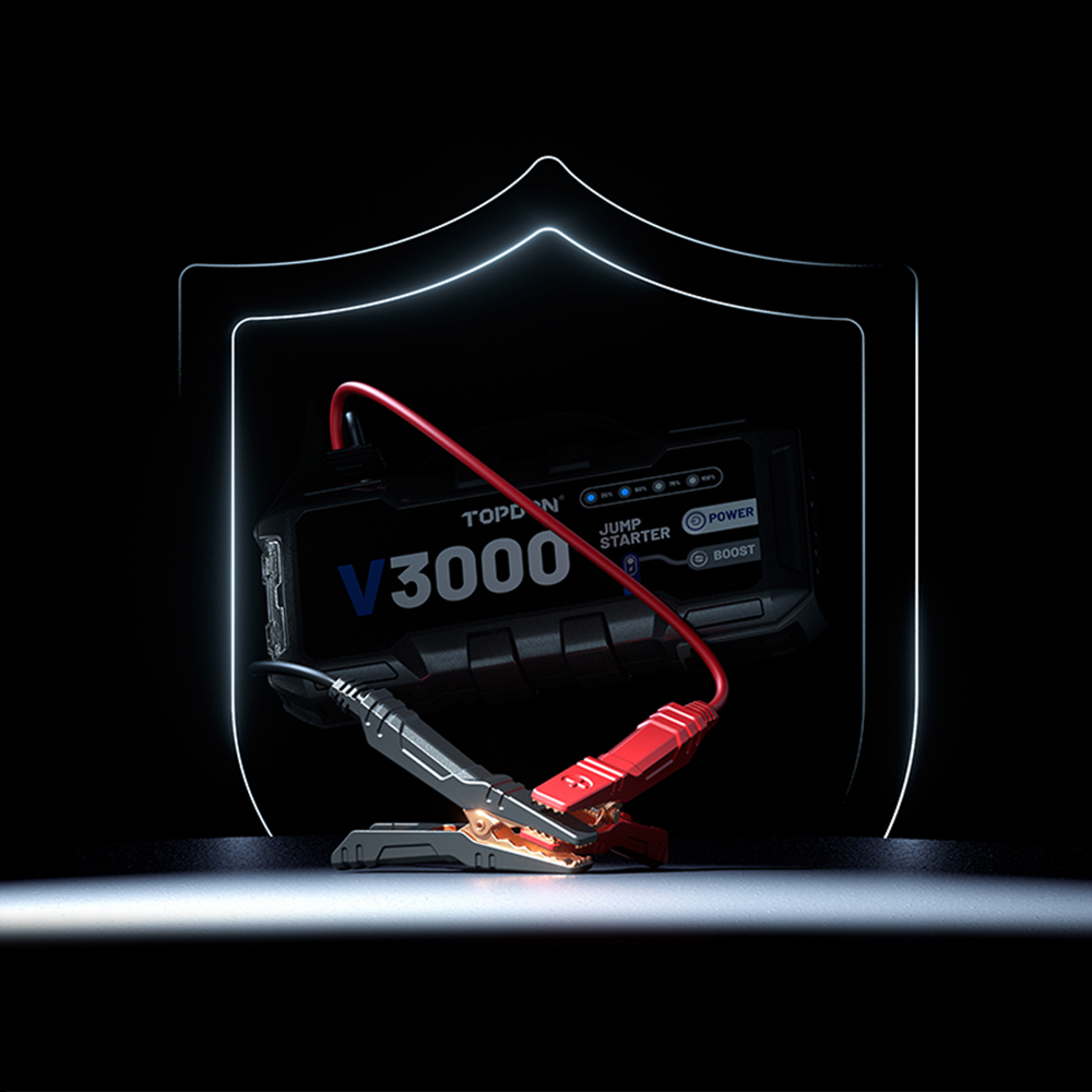 The V3000 on suunniteltu sisältämään 10 edistynyttä turvatoimintoa, kuten käänteisen napaisuuden, oikosulun, ylivirran ja ylikuumenemisen suojaukset. Siinä on myös innovatiivinen Stop Spark™ -teknologia, joka estää vaaralliset kipinät ja akun vauriot toistuvassa käytössä. Tämä tekee V3000:sta yhden markkinoiden turvallisimmista ladattavista käynnistysapulaitteista.