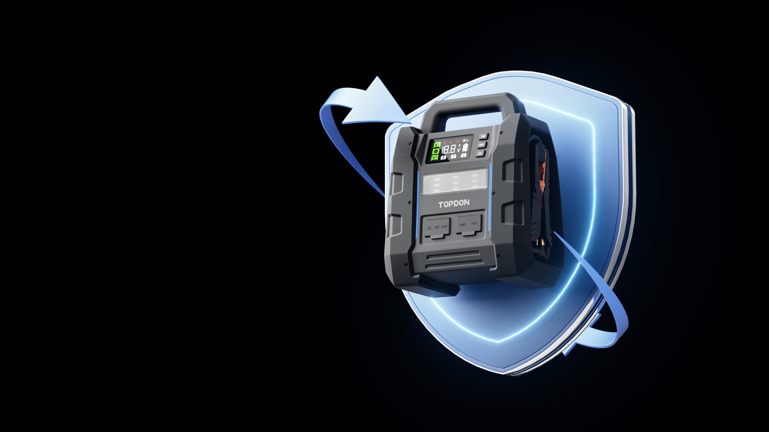 - TOPDON V4500 Plus Jump Starter tarjoaa täydellisen virtaratkaisun suurten moottoritilavuuksien ajoneuvoille, kuten puoliperävaunuille ja perävaunuille. Huippuvirralla 4500A se on erityisesti suunniteltu 12V ajoneuvoille, sopien bensiini- ja dieselajoneuvoille, joiden moottoritilavuus on jopa 16 litraa.