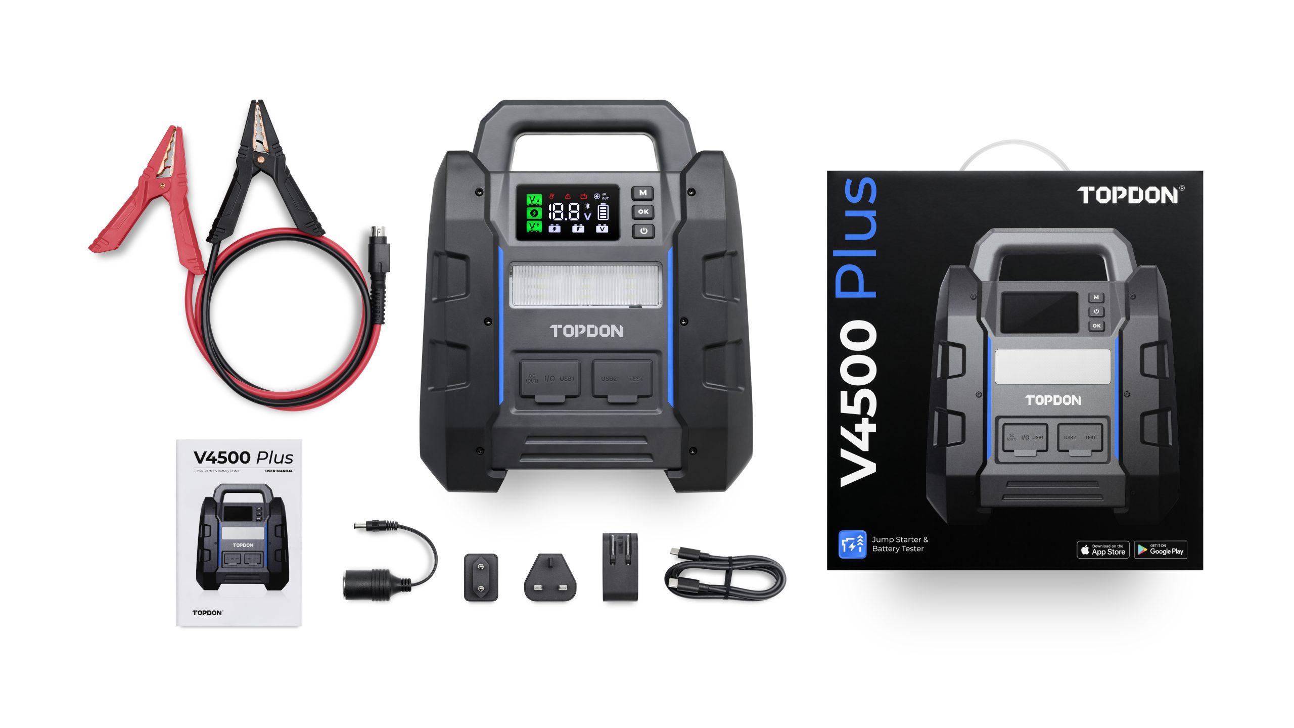 - V4500 Plus tarjoaa enemmän kuin pelkät käynnistysominaisuudet. Kun se yhdistetään sovellukseen, siitä tulee kattava akkutesteri, jonka avulla käyttäjät voivat suorittaa perusteellisia akkutestejä ennen vaihtoa. Tämän 2-in-1-toiminnallisuuden ansiosta käyttäjät voivat arvioida akkujaan itse, säästäen sekä aikaa että rahaa välttämällä tarpeettomia korjaamokäyntejä ja perusteettomia akun vaihtoja.