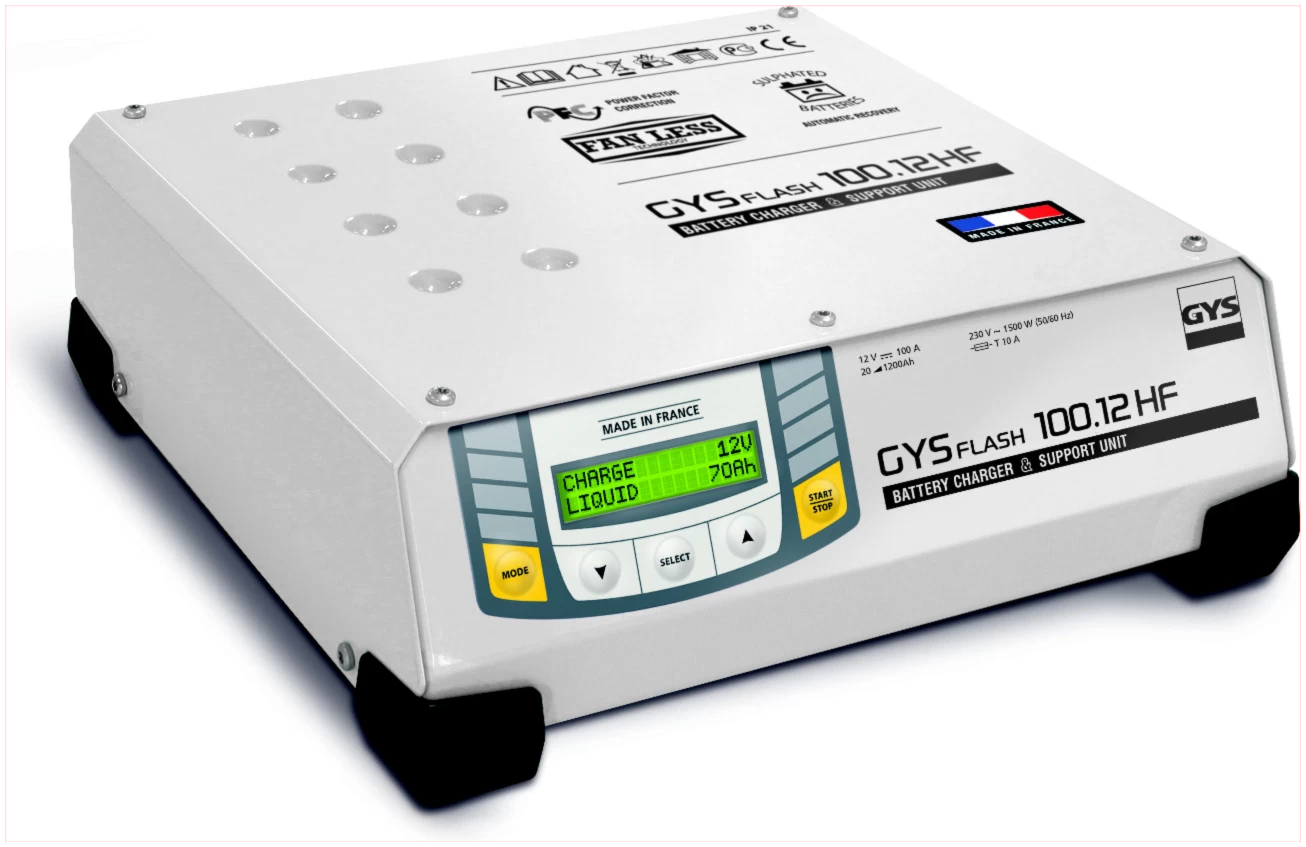 Gysflash 100-12 HF on 100 A:n suuritehoinen vakaa virtalähde, jossa on invertteritekniikka ja 5 toimintoa: