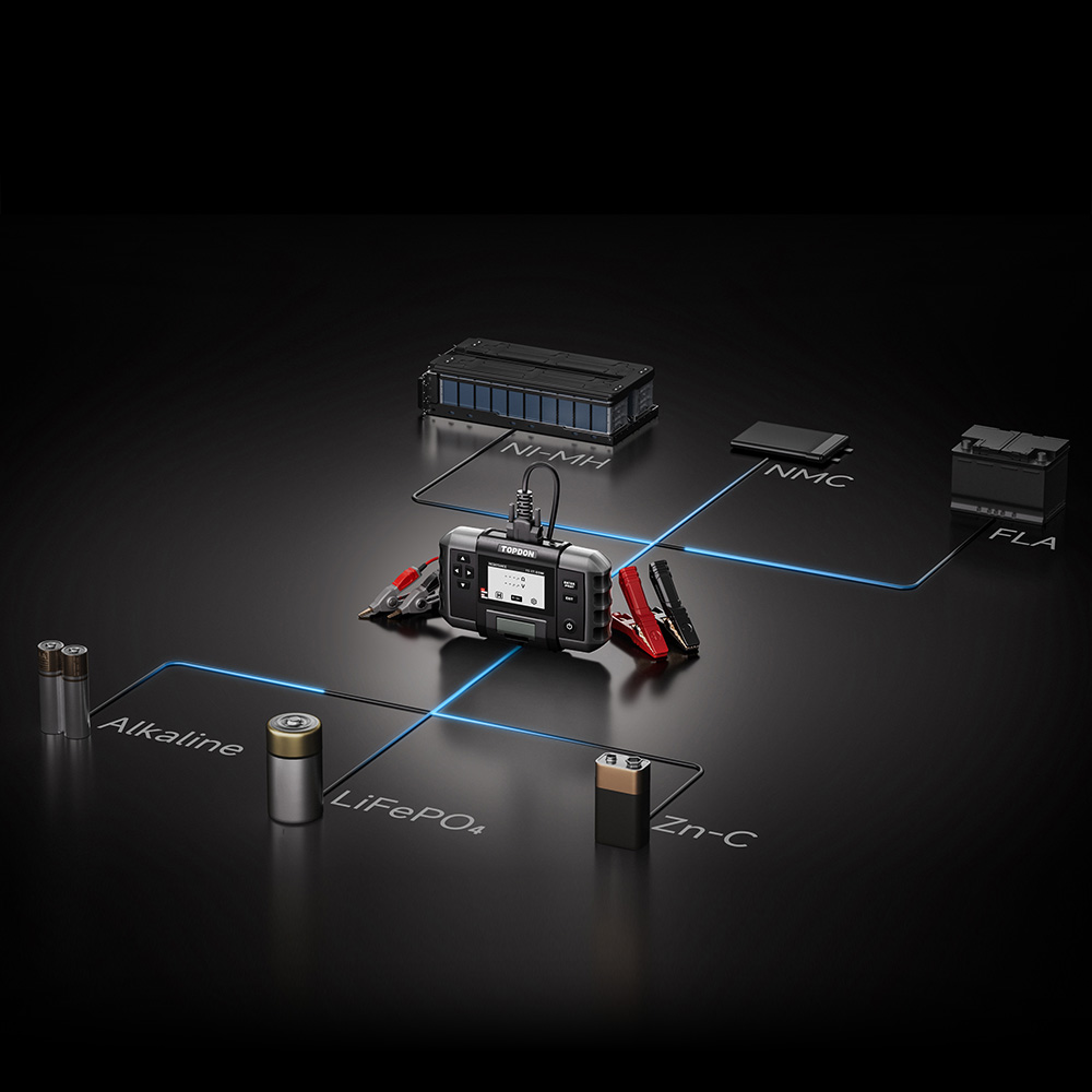 - Tukee akkutestejä 6V, 12V ja 24V; käynnistys-, lataus- ja järjestelmätestejä 12V ja 24V. Se on yhteensopiva perinteisten märkäakkujen, AGM-, GEL- ja EFB-akkujen kanssa.