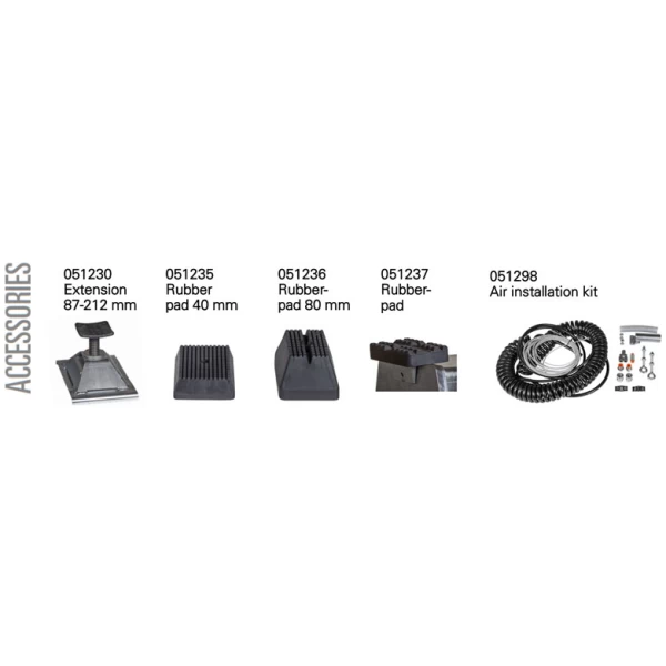 Lisävarusteina saatavilla on myös erilaisia nostokumeja sekä paineilmasarja.
