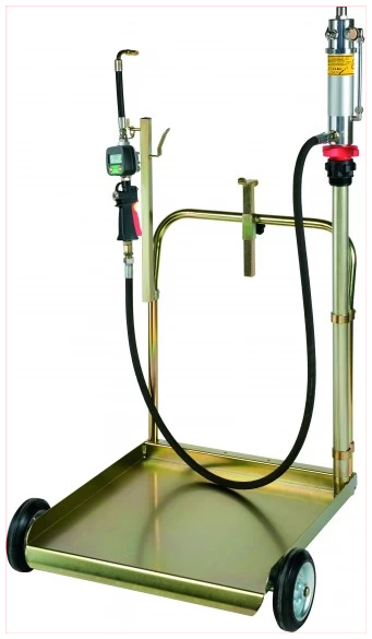 Trolley-asennettava sarja 180÷220 kg:n tynnyreille, pneumaattisella mäntäpumpulla R 3:1 – 14 l/min, trolley tuotenro 0E80200 ja pistooli 0E37758