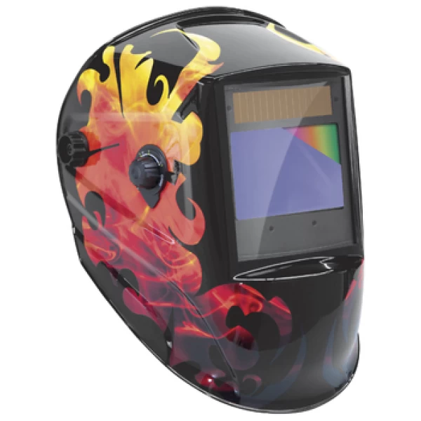 Turvallisuuden kannalta välttämätön optoelektroninen hitsauskypärä ZEUS FIRE 5-9/9-13 G TRUE COLOR suojaa hitsaajan kasvoja ja silmiä UV- ja infrapunavalolta sekä roiskeilta.