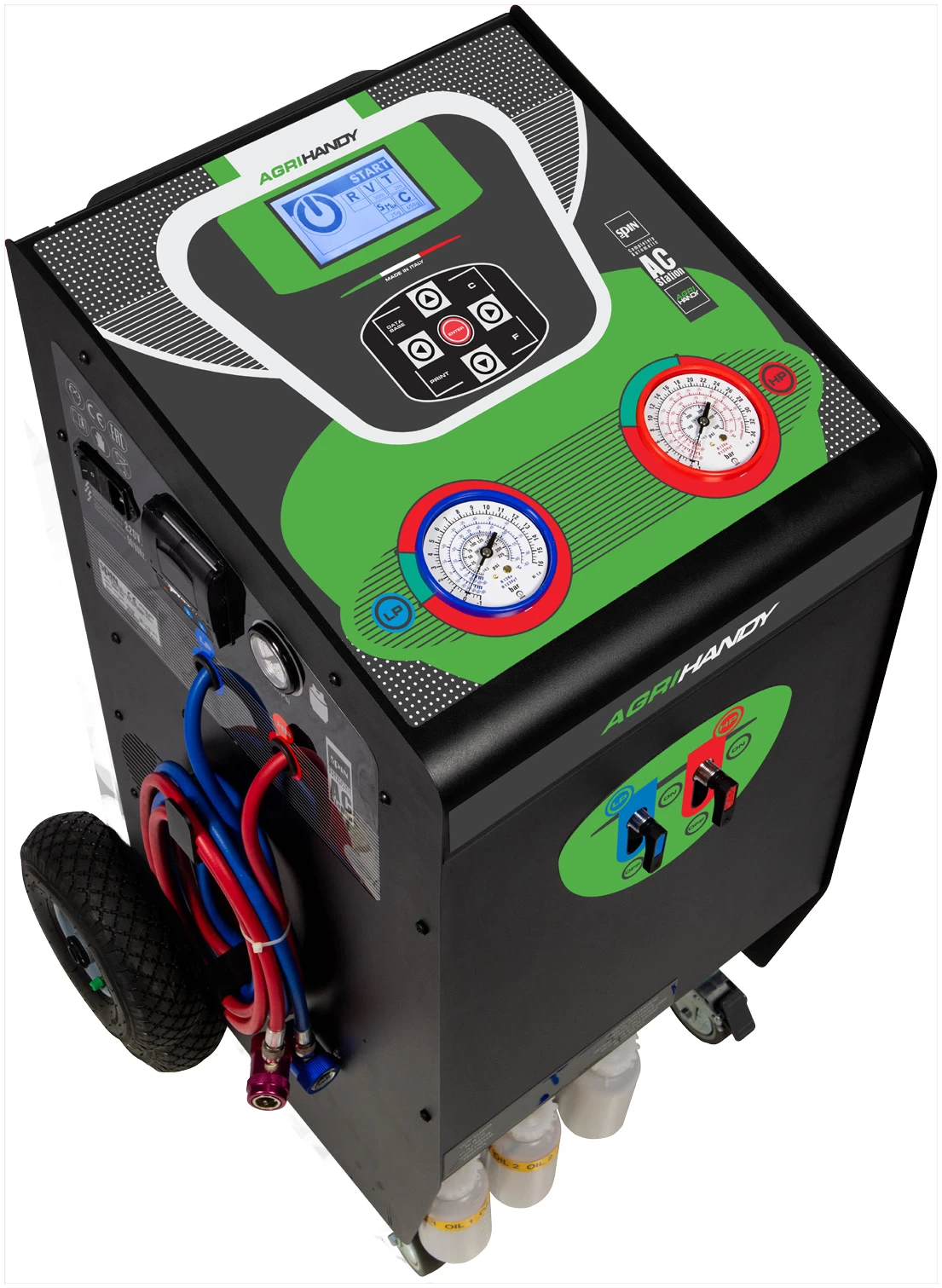 Tämä Spinin ilmastoinnin huoltolaite on varustettu valmiilla ajoneuvotietokannalla, joka pitää sisällään niin maataloustyökoneet, maansiirtoautot, muun raskaan kaluston kuin henkilöautotkin.