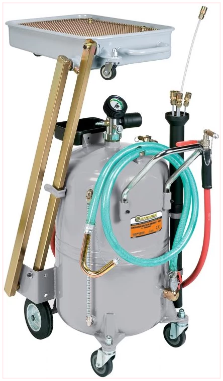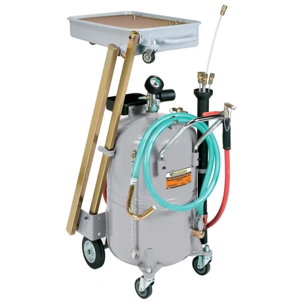 Tässä imuvaihtaja mallissa on suppilon sijaan erittäin kätevä valuma-allas, jonka voi laskea alas ja ajoneuvon alle keräämään valutetut öljyt. Näin ajoneuvoa ei tarvitse välttämättä edes nostaa ylös nostimen avulla.
