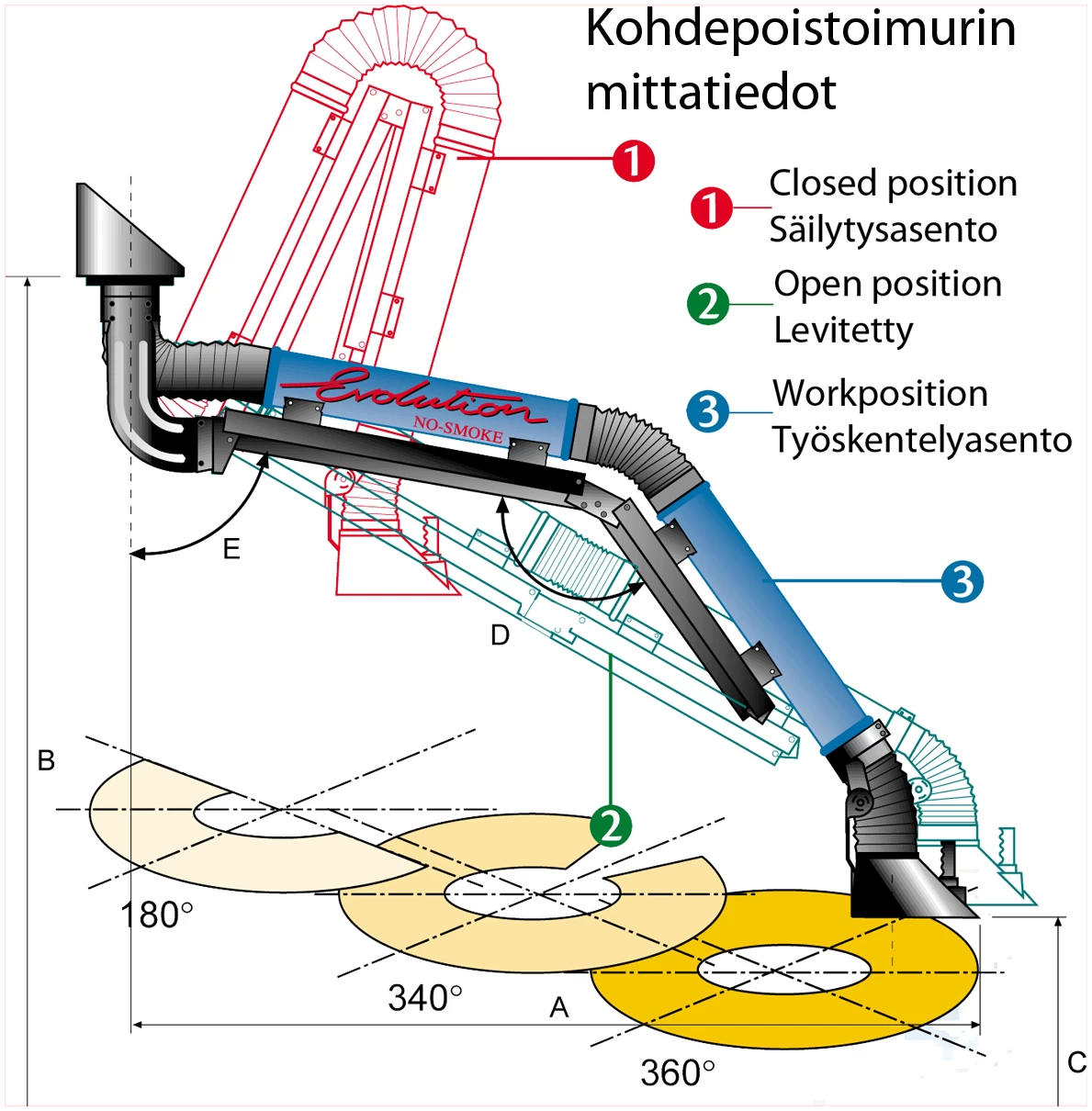 Kohdepoistoimurin keskeinen ominaisuus on itsekantava puomistorakenne. Tukeva puomisto parantaa kohdepoistoimurin käytettävyyttä ja vapauttaa koko imuputkiston vaipan poikkipinta-alan käyttöön. Imuputkiston rakenne vähentää merkittävästi virtaushäviöitä ja lisää energiatehokkuutta, minkä lisäksi se poistaa entistä tehokkaammin savukaasut ja epäpuhtaudet työpisteestä.