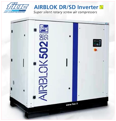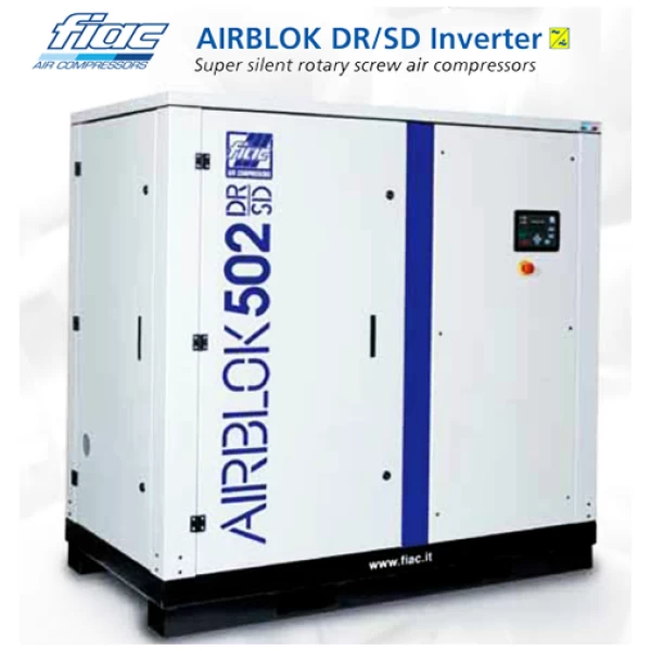 Tehokas ruuvikompressori taajuusmuuttajaohjauksella. Airblock DR/SD -kompressorien käyttö on helppoa, selkeän käyttäjäystävällisen näyttöpaneelin ansiosta.