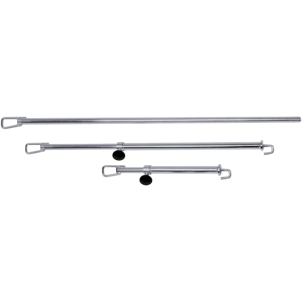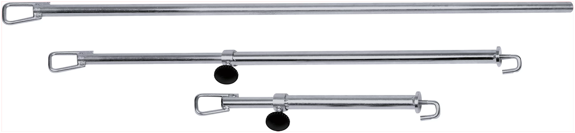 Luukkupidike sarjassa on 3 eri mittaista tukivartta joilla saadaan lukittua konepelti, takaluukku tai ovi avonaiseksi.