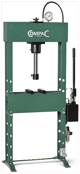 Käsikäyttöinen korjaamopuristin 20 tonnin puristusvoimalla Compac:ilta.