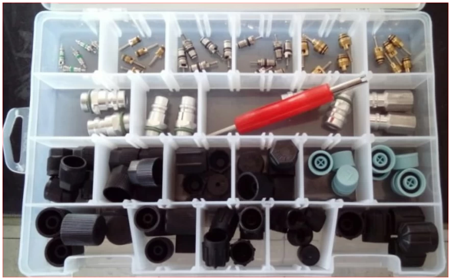 Spinin Korkki / venttiili- ja tiivistesarja ilmastoinnin huoltoja varten.