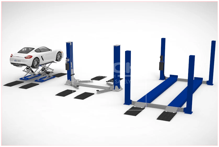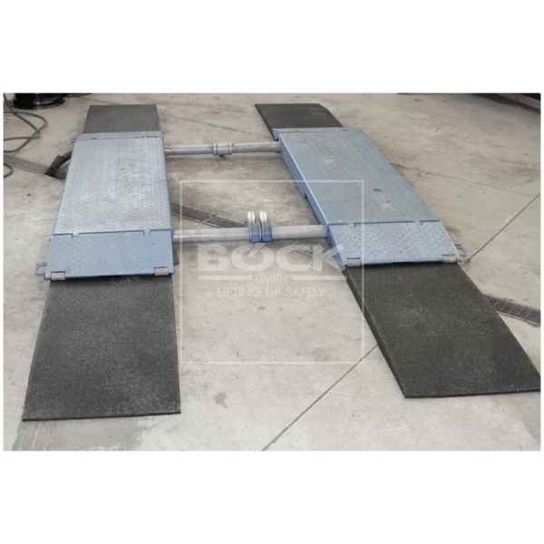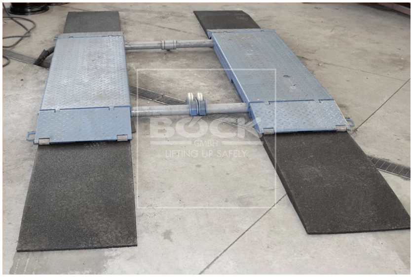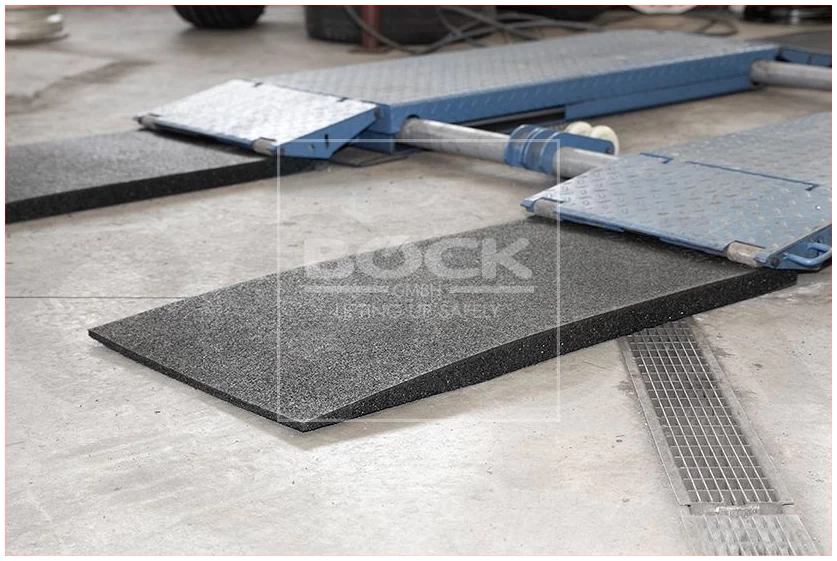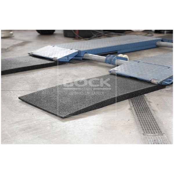 Kestävä, laadukkaasta materiaalista valmistettu kumiramppi, joka helpottaa matalien ajoneuvojen nostimelle ajoa.