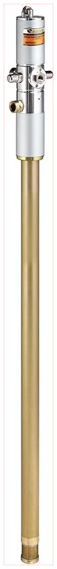 Pneumaattinen mäntäpumppu s. 600, R 1:1 – 23 l/min, Teflon®-tiivisteillä ja imuputkella 940 mm. Sopii 180÷220 kg:n tynnyreille.