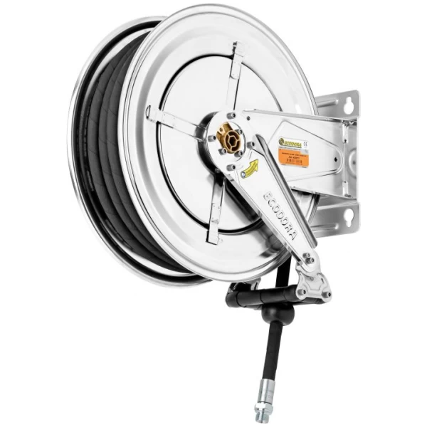 AISI 304 ruostumaton teräs kiinteä letkukela sarjaa 430, öljylle ja vastaaville, 150 bar, mustalla kumiletkulla 15 m, ø 1/2″