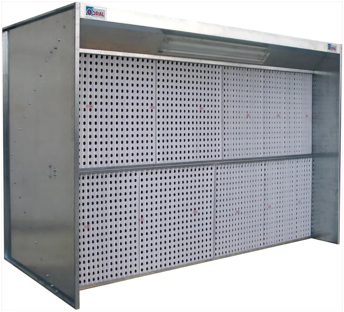 Toimintaperiaate maalauskaapin katolle asennetun keskipakopuhaltimen avulla luodaan alipaine, joka pakottaa ilman kiertämään suodattimien läpi. Tämä virtaus kuljettaa ilmassa leijuvat maalihiukkaset suodattimiin ilman, että ne leviävät ympäristöön. Ensimmäinen suodatusvaihe estää suurempien maalihiukkasten kulun ja toinen, lasikuidusta valmistettu suodatin estää hienompien hiukkasten kulun. Kiinteistä pigmenteistä puhdistettu ilma poistuu puhaltimen avulla. CORAL-kuivamaalauskaapit on suunniteltu monipuolisuutta, modulaarisuutta ja tehokkuutta silmällä pitäen. Ne koostuvat kokonaan ruuvilla kiinnitetyistä sinkityistä paneeleista: sivupaneelit ja väliseinät ovat itsekantavia. Etuosan poistoaukossa on suodattimen kiinnityskiskot kaksivaiheista suodatusta varten. Kattopuolella on kipinävarmistettu keskipakopuhallin. Mallisto sisältää leveydet 1–1,5, 2, 2,5, 3, 4, 5 ja 6 metriä kahdessa korkeudessa, ja saatavana on yksittäiset imuseinät (versio A) tai sivuseinät, joissa on jatkettu katto (versio B).