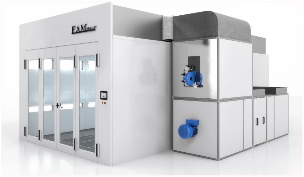 Suurikokoinen kammio, korkeatehoinen invertteripohjainen ilmanvaihto ja integroitu PLC-yksikkö tekevät tästä kammiosta todella harvinaislaatuisen hyvän työskentelykopin kaikkiin maalaustarpeisiin. Suoravetoiset korkean suorituskyvyn keskipakopuhaltimet ulkoisilla korkean hyötysuhteen moottoreilla. Ohjauspaneeli, jossa 9,7 tuuman värillinen kosketusnäyttö ja PLC. Moduloiva suorapolttoinen poltin. Invertteriyksikkö ilmavirran säätämiseen.