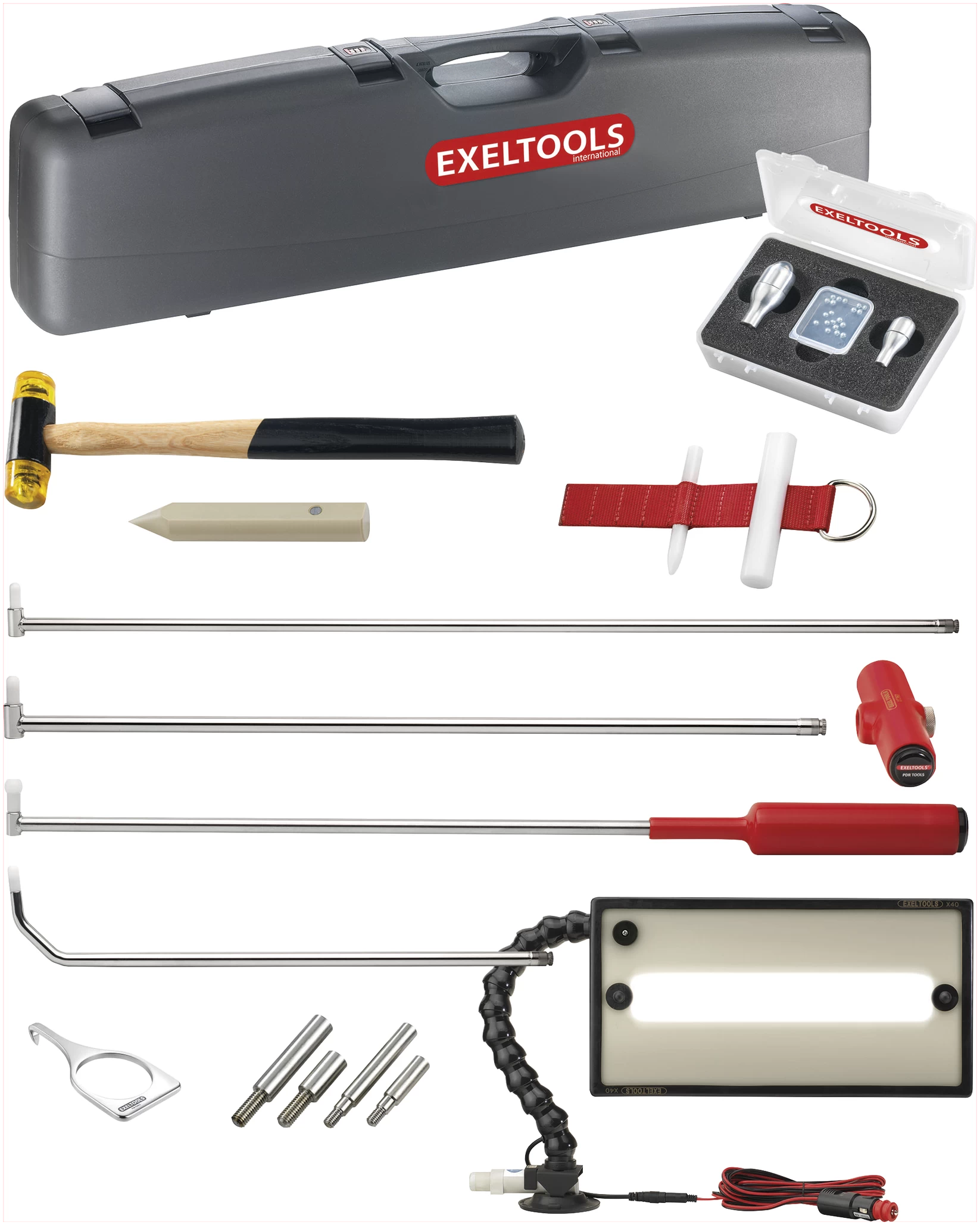 Tällainen sarja saattaa sisältää erilaisia metallinvääntimiä, kumeja tai muovia olevia työntökahvoja, liimapistoolin, liimapaloja, vetohakoja ja muita välineitä, jotka auttavat lommojen muotoilemiseen takaisin alkuperäiseen kuntoonsa. PDR-tekniikkaa pidetään usein kustannustehokkaampana ja nopeampana vaihtoehtona perinteisille korjausmenetelmille, koska maalausta ja kittiä ei tarvita.