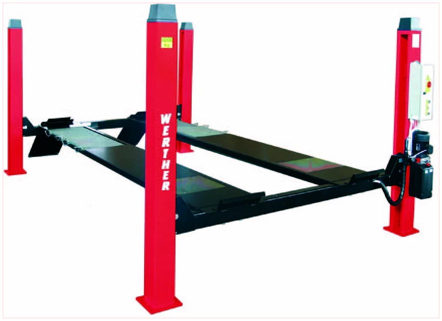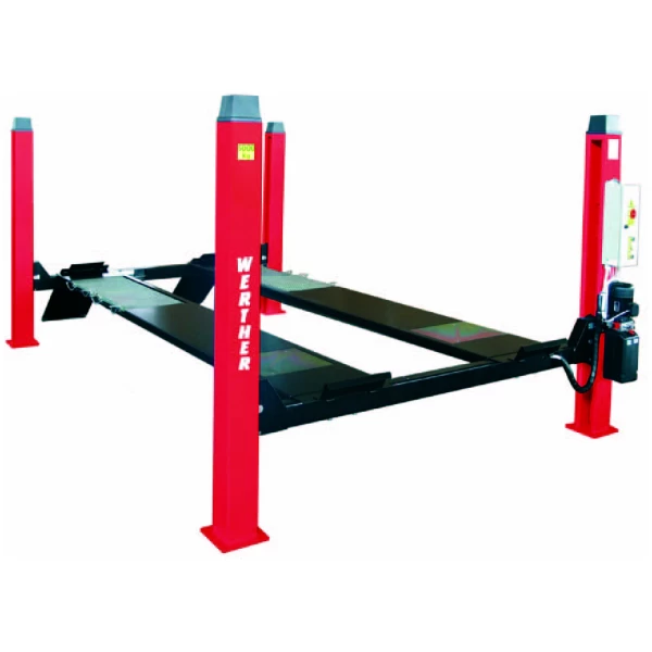 Werther 450 AT/5 Nelipilarinostin suuntausvarustuksella ja 5 700 mm pitkillä ajosilloilla. Nostokapasiteettia aina 5 000 kiloon asti!