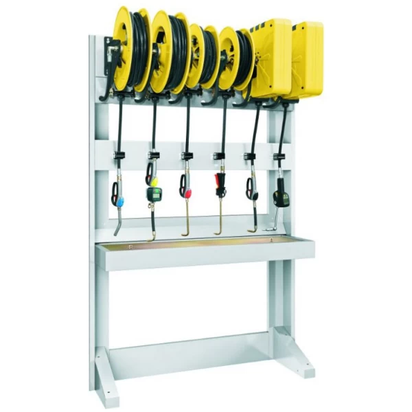 Etupuolinen huoltopaneeli 6 letkukelalle, säiliöllä.