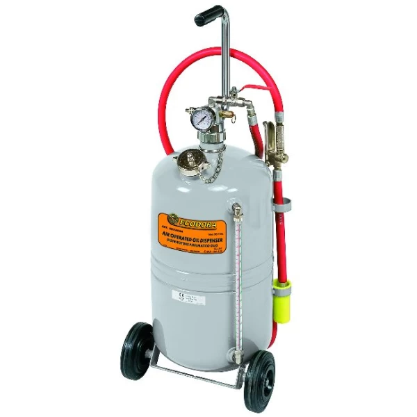 Pneumaattinen öljynjakelulaite, 24 litraa, varustettu nestemäärän mittarilla.