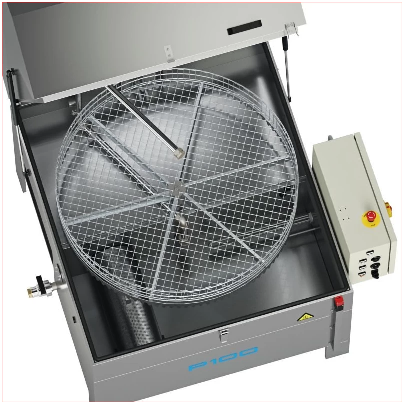 Osienpesukoneessa on pyöreä pesukori, jossa mekaaninen pyöritys. Koko laite on valmistettu ruostumattomasta teräksestä ja osienpesukoneessa on mekaaninen ohjauspaneeli. Laitteeseen on mahdollista säätää pesun kesto (0-30min) sekä lämmitys. Näihin osienpesukoneisiin on myös mahdollista asentaa lisävarusteina öljynerotin.