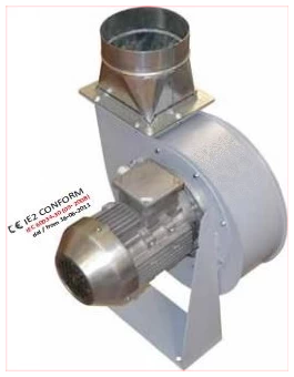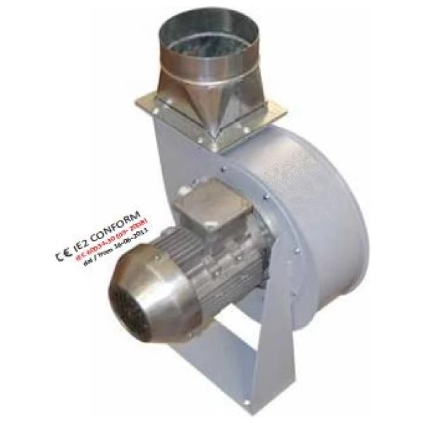 Teräslevyinen tuuletin, joka on erityisesti suunniteltu savukaasujen ja kaasujen poistoon. Sähkömoottori täyttää IE2-määräykset ja on varustettu jäähdytyspuhaltimella. Liitäntä 400 V / 230 V – 50 Hz, kolmivaiheinen. Mukana tulo- ja poistolaipat sekä tukikiinnike.