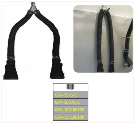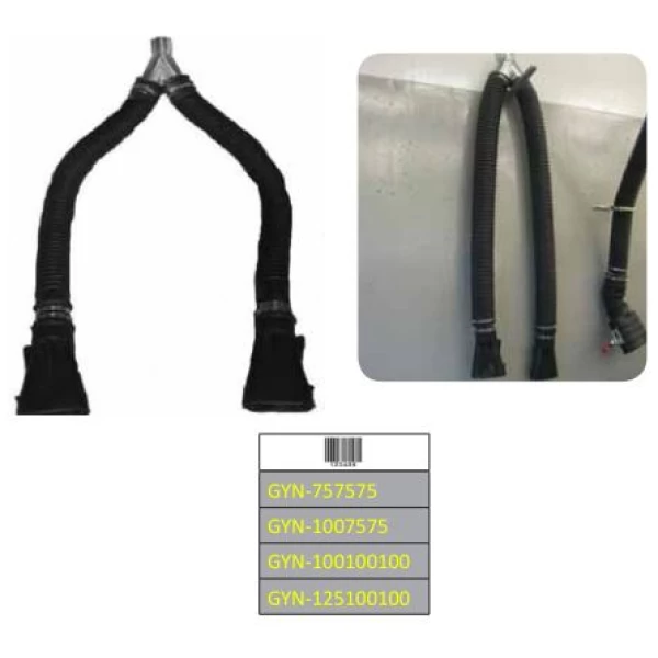 1,25m pitkä Y-letku, jonka päissä ovaalit muoviset GRN-suulakkeet.