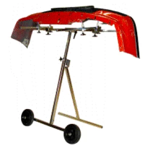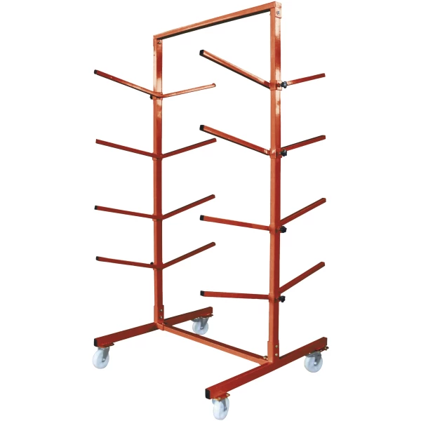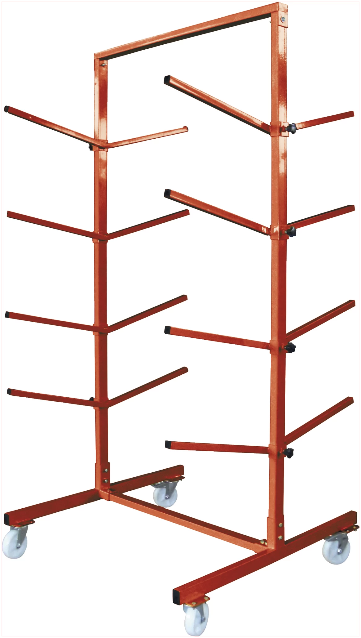 Puskureiden väliaikaiseen säilytykseen tehty siirreltävä teline.