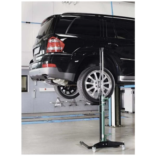 Pyöränostin on ergonominen ratkaisu helppoon ja turvalliseen henkilöauton renkaan asennukseen.