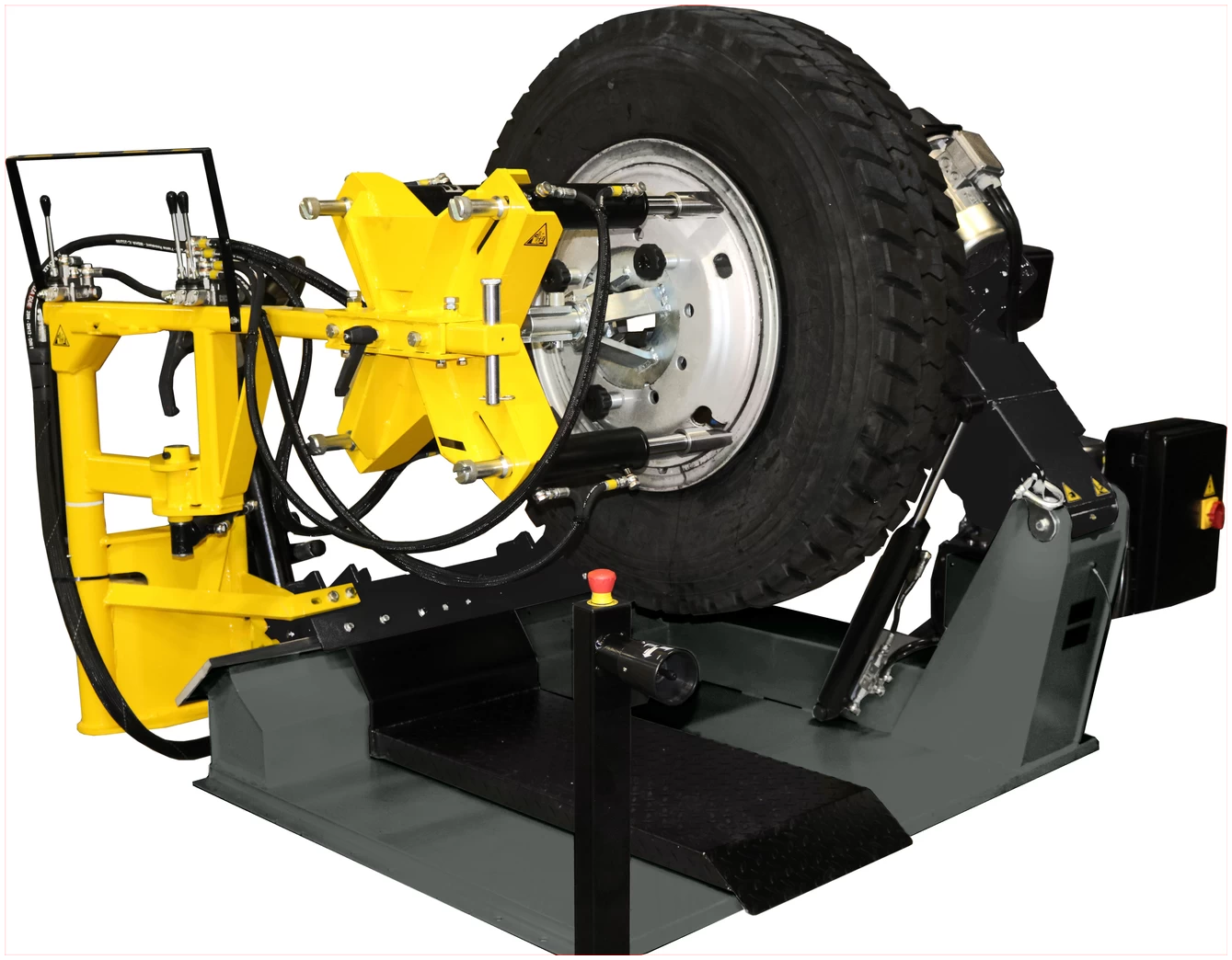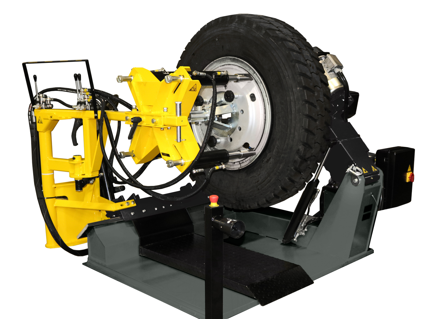 Rengaskone / renkaanvaihtolaite, joka soveltuu RUN-FLAT-, sotilas-, panssaroitujen ja tavallisten renkaiden vaihtoon kuorma-autoissa ja raskaissa ajoneuvoissa. Sopii sekä sisäkumilla että sisäkumittomille renkaille.