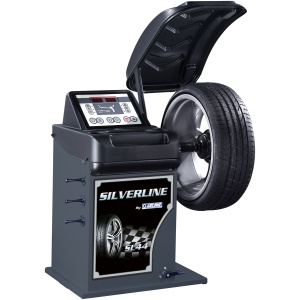 Tässä tasapainotuskoneessa on vakiovarusteena paineilmatoiminen pyörähissi (nostokyky 200kg) ja mukaan kuuluu adapteri kuorma-autojen renkaille.
