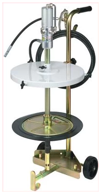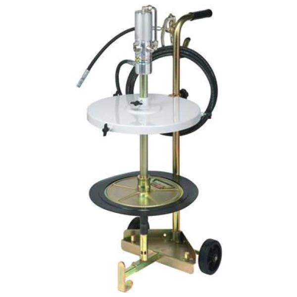 Vaunulle asennettava rasvaussarja 50÷60 kg:n tynnyreille, sisähalkaisija 340÷385 mm, pumppu R 50:1, vaunu tuotenro 0E80035 ja rasvapuristin.