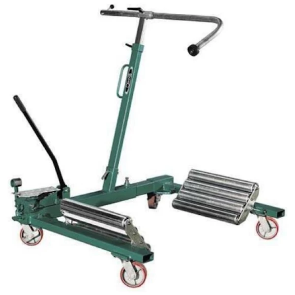 Rengasnostin omaa laakerilliset nostorullat, jotka helpottavat renkaan kohdistamista pulteille. Rengasta voidaan pyörittää helposti rullien päällä ja pultit saa näin vaivatta paikoilleen.