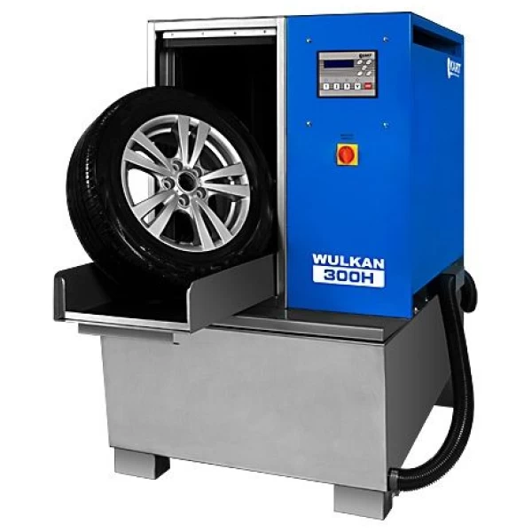 Muovirakeilla ja kierrätysvedellä toimiva renkaanpesukone.