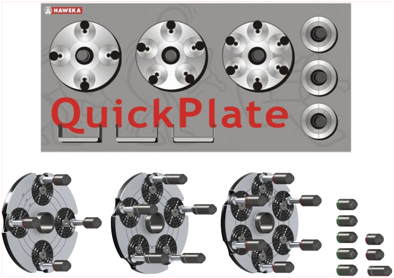 Portaattomasti säätyvät QuickPlate-tappilaipat käsittävät 4-, 5- ja 6–pulttisten vanteiden pulttijaot välillä 95-182.