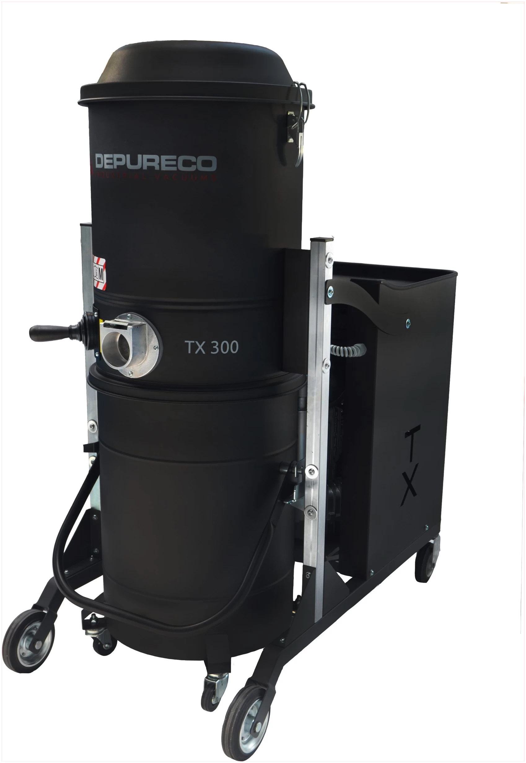 TX300 on kolmivaiheinen teollisuuspölynimuri kiinteille materiaaleille. Kestävyytensä, korkean imutehonsa ja suuren suodatuspinta-alansa ansiosta sillä on mahdollista imeä suuria määriä materiaalia. Se on varustettu sivukanavapuhaltimella, lisä-äänenvaimentimella sekä M-luokan suodattimella, joka mahdollistaa myös hienonjakoisen pölyn siivoamisen.