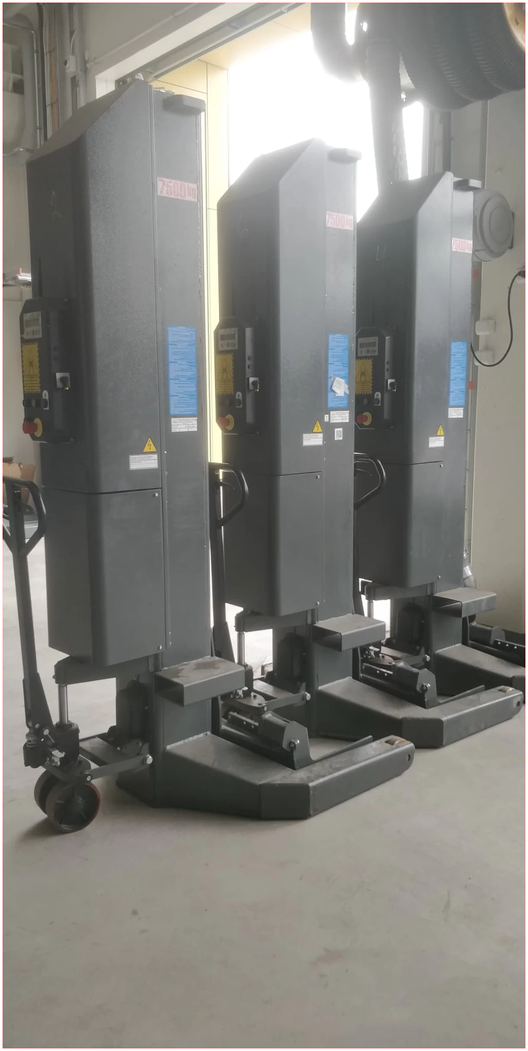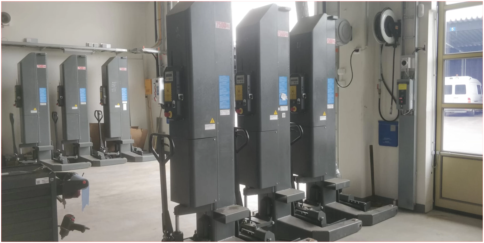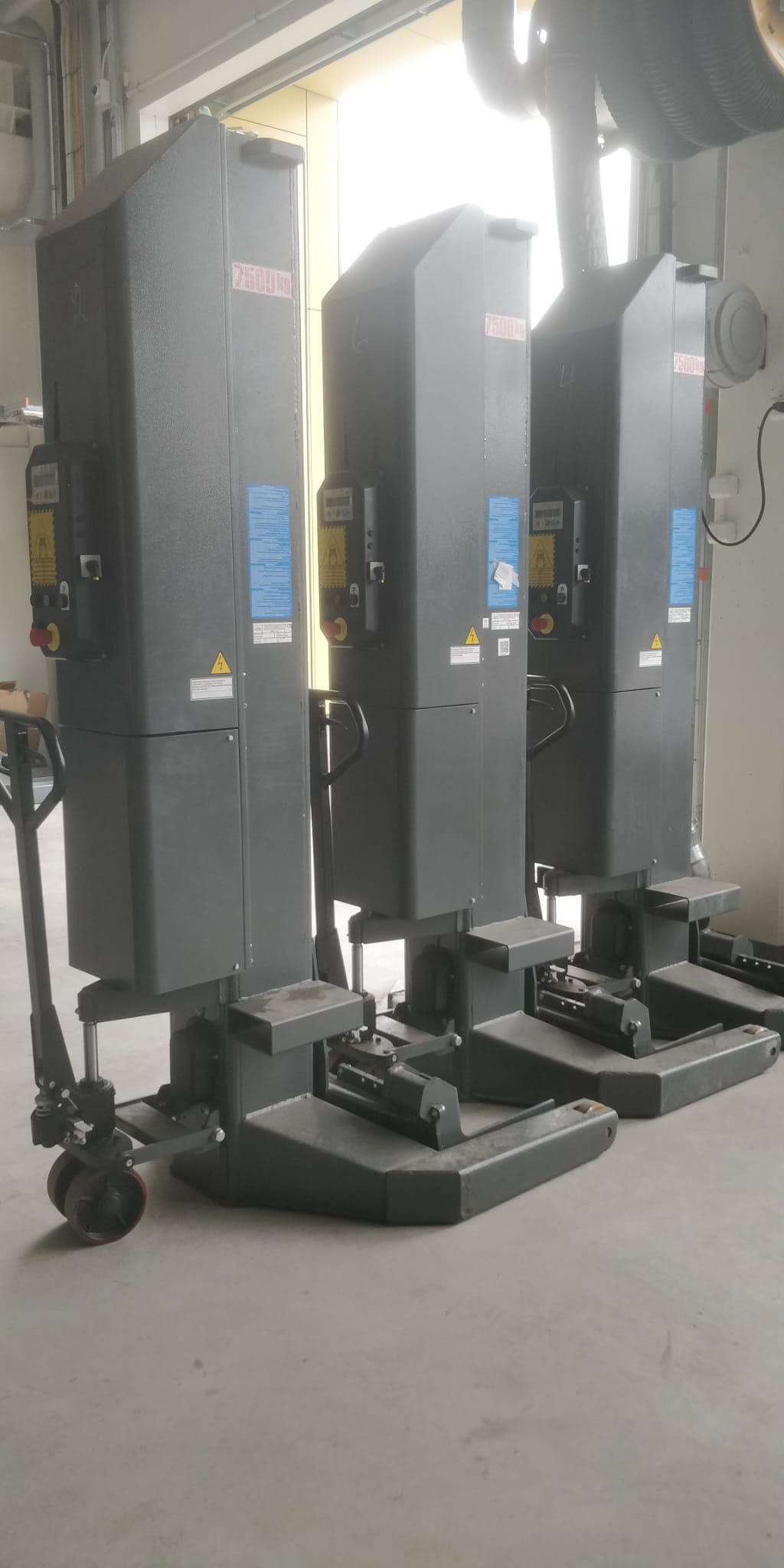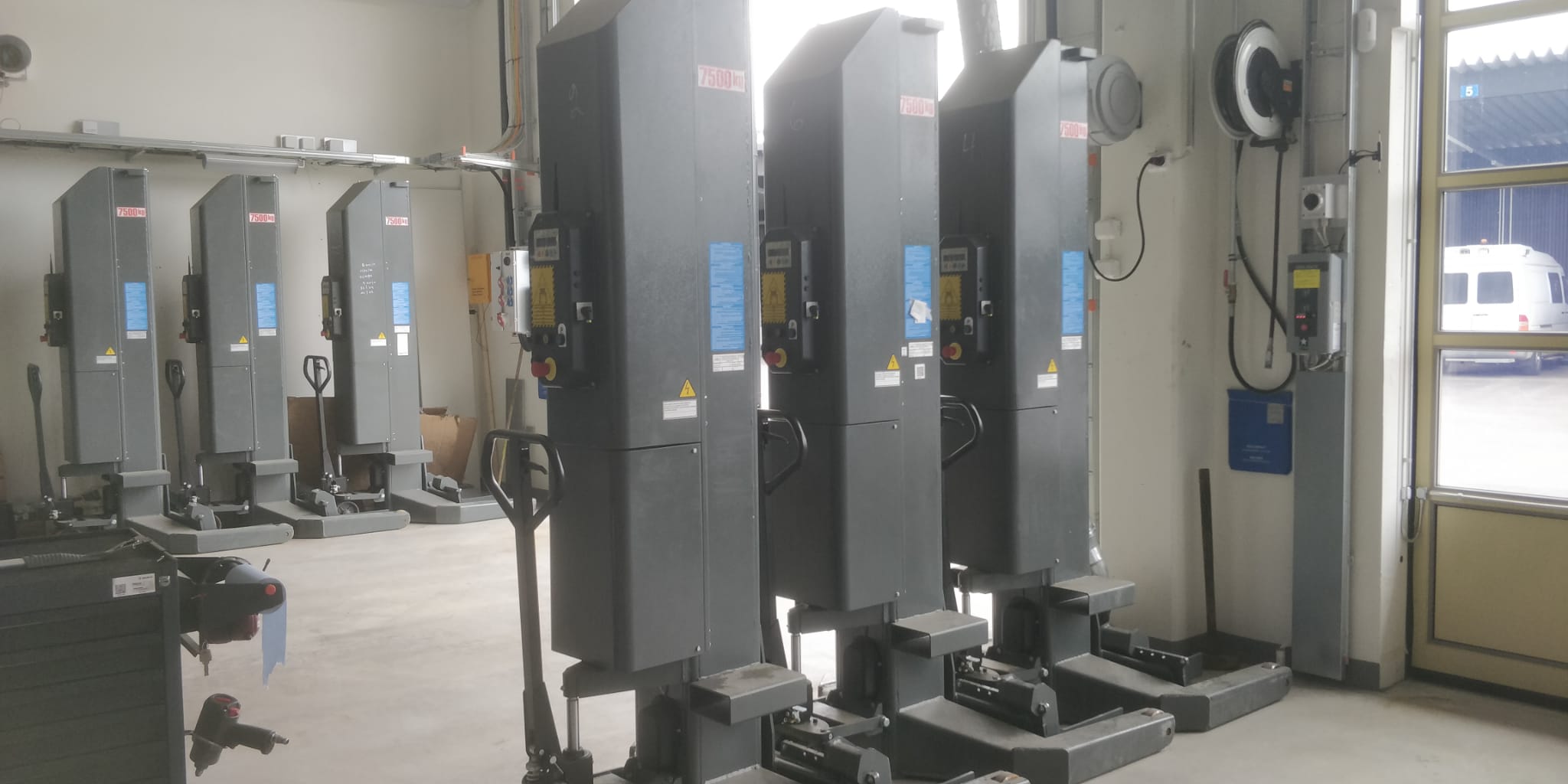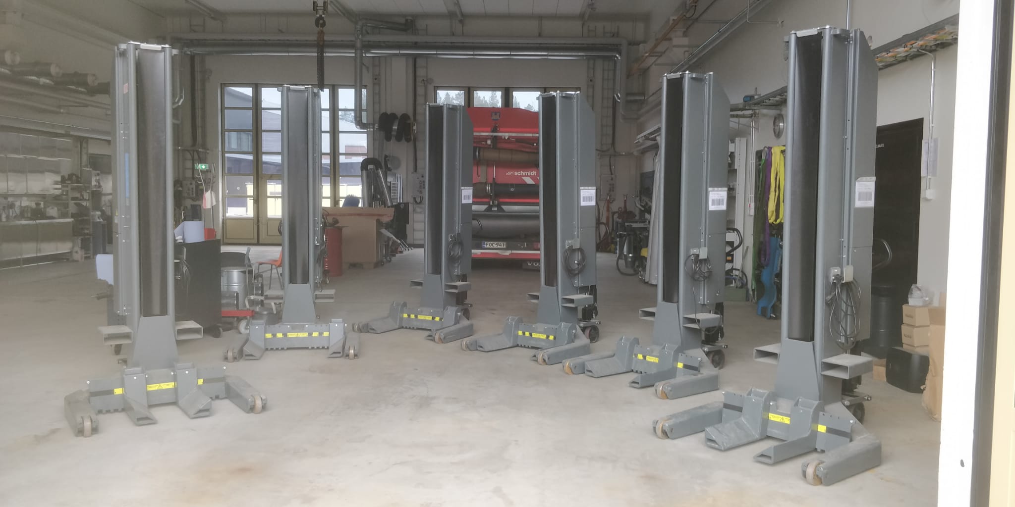 Erittäin vähän käytetty langaton nostopilarisarja kuudella tolpalla joiden nostokyky 7500 kg per tolppa.